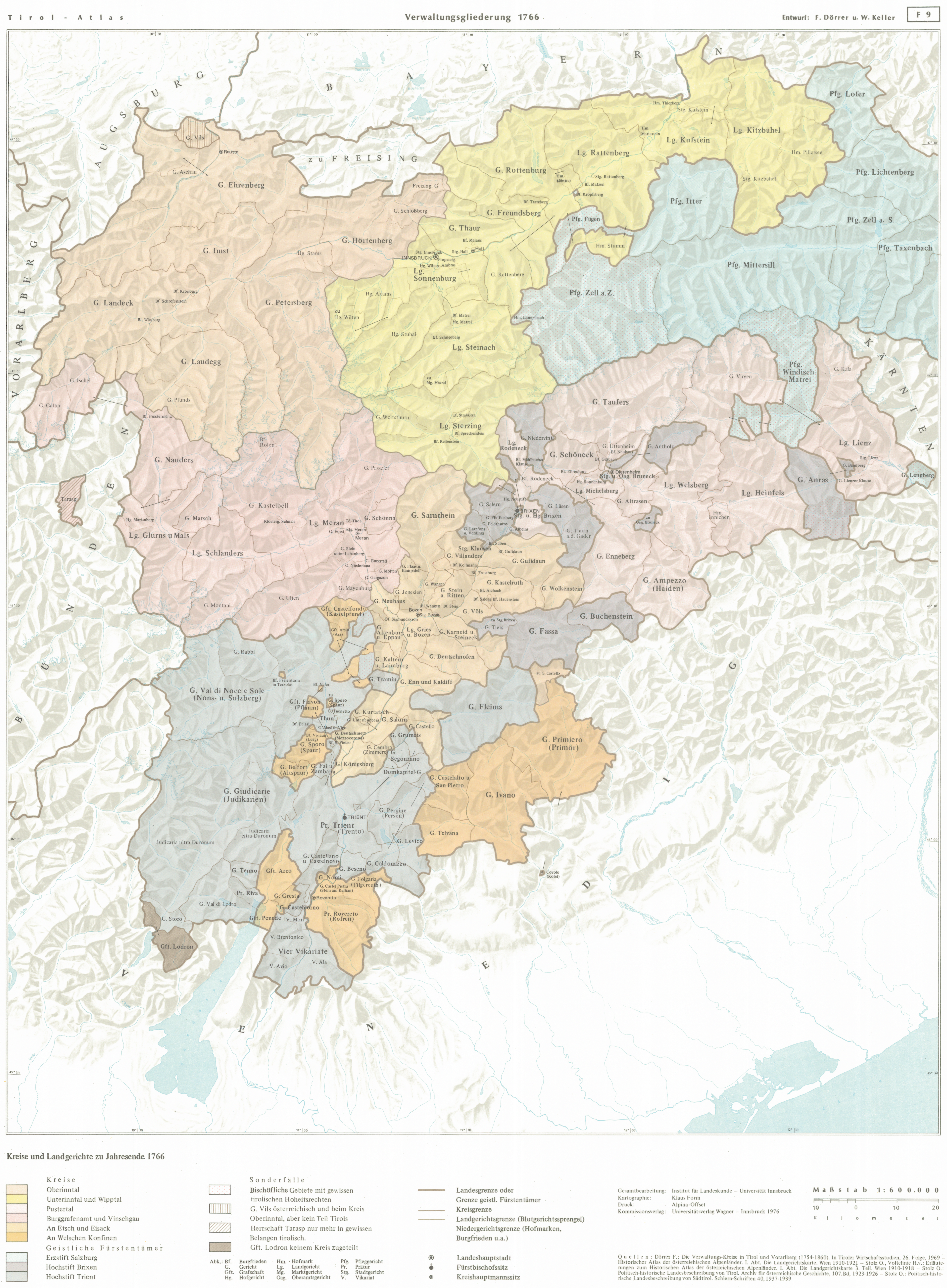 - Begleittext: Fridolin Dörrer: Kreise und Gerichte zu Jahresende 1766. In: Tirol Atlas Begleittexte III, S.6-10, Innsbruck 1976.