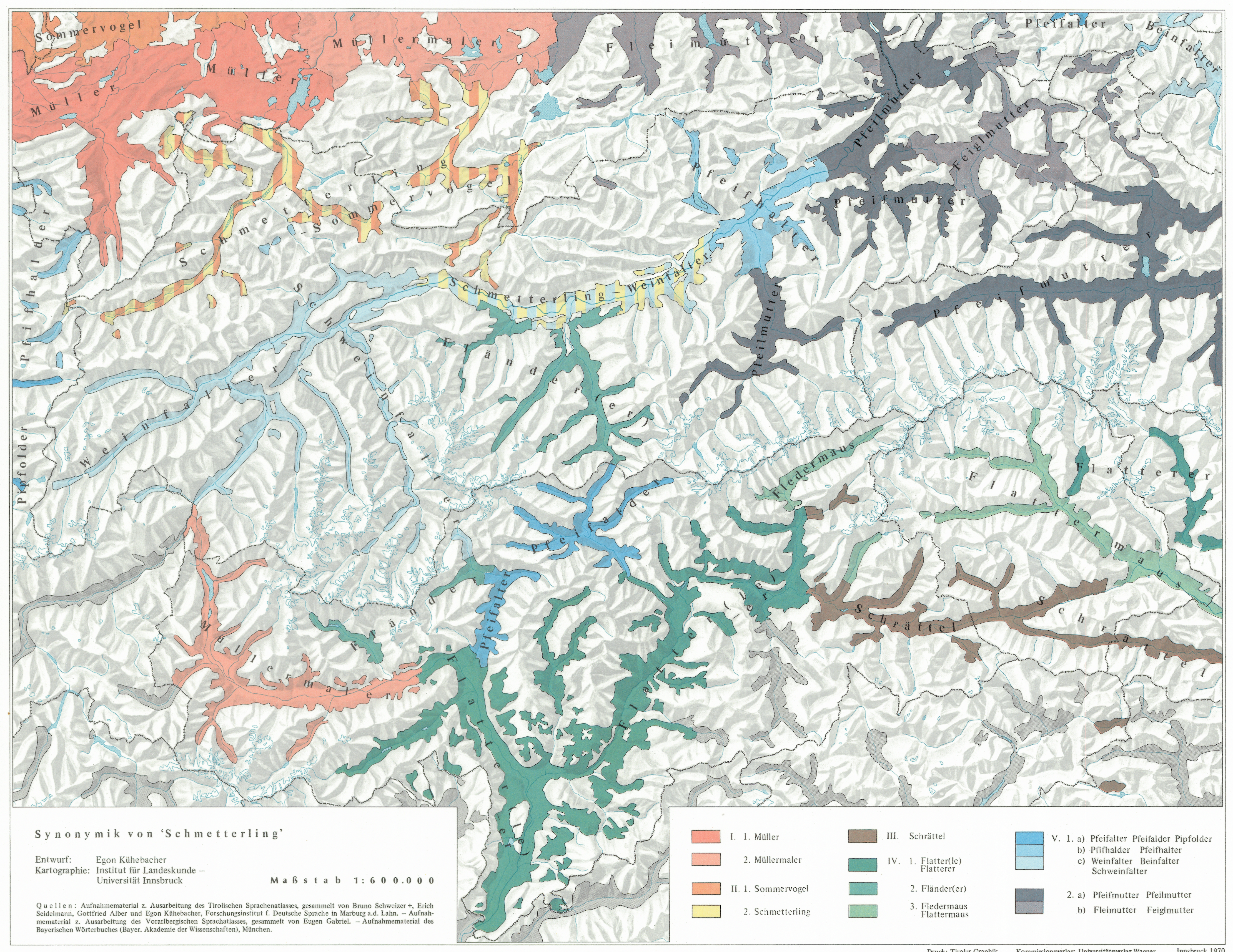 - Begleittext: Egon Kühebacher: Sprache und Dialekt. In: Tirol Atlas Begleittexte I, S.21-27, Innsbruck 1974.