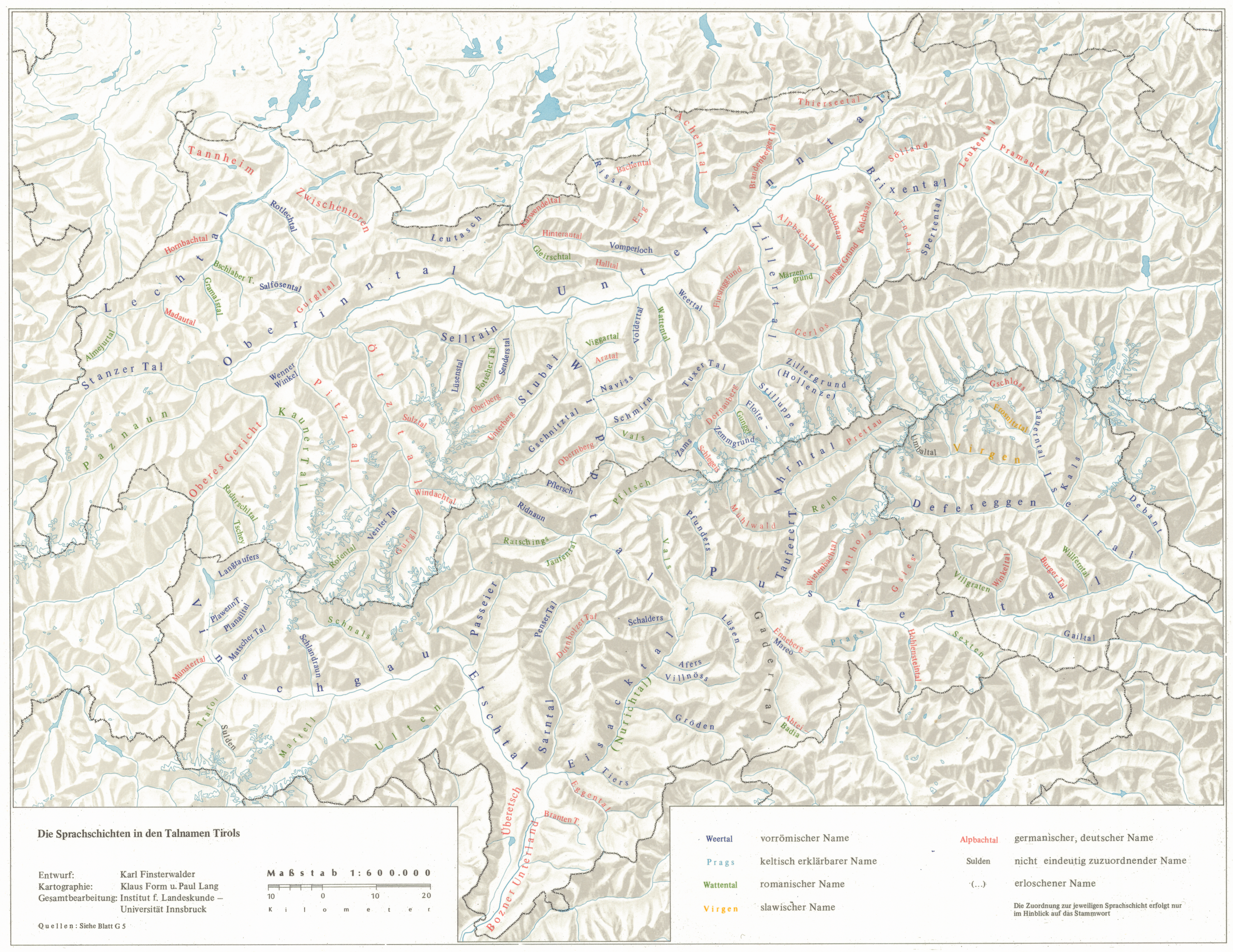 G6. Die Sprachschichten in den Talnamen Tirols (1:600.000)