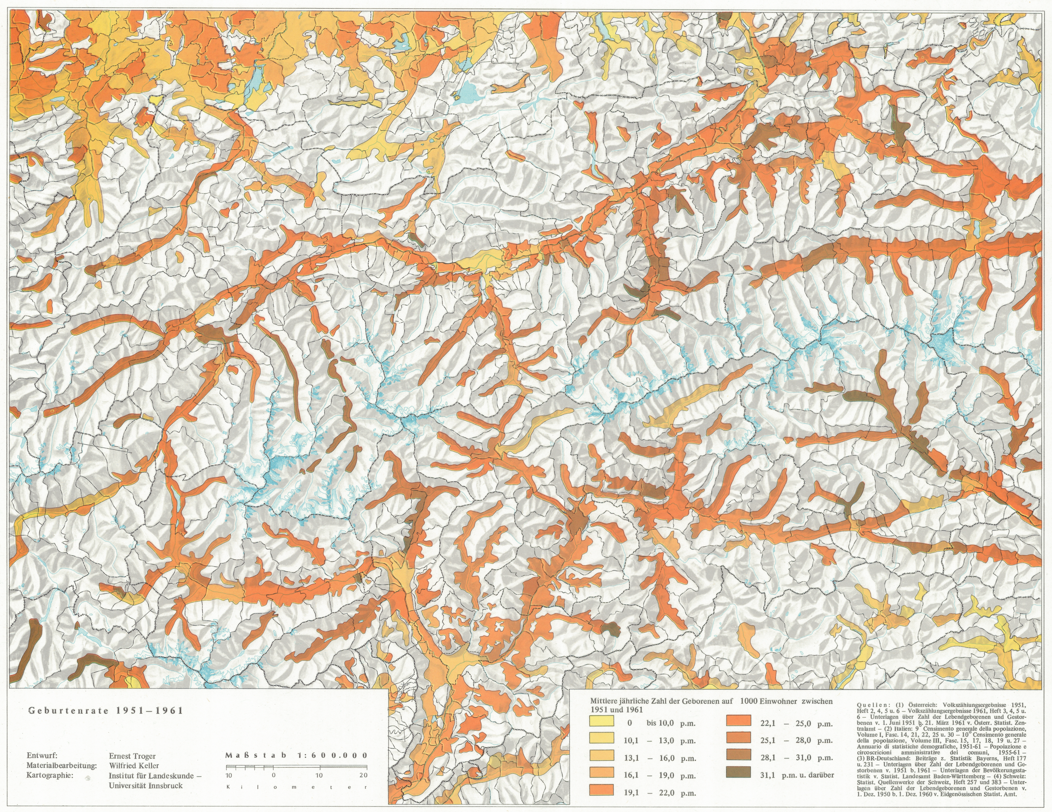- Begleittext: Wilfried Keller: Bevölkerung - Verteilung, Entwicklung, Gliederung. In: Tirol Atlas Begleittexte I, S.34-35, Innsbruck 1974.