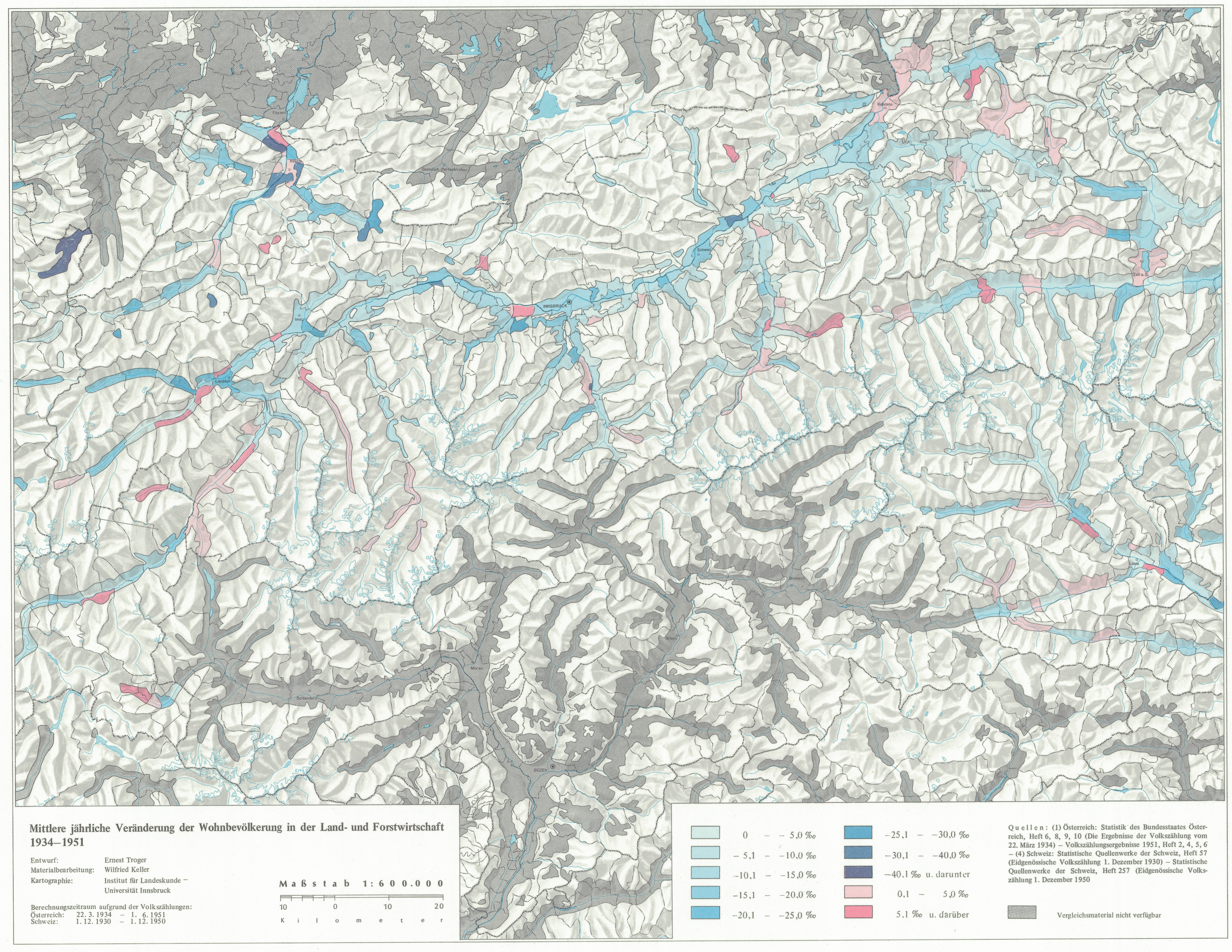 - Begleittext: Wilfried Keller: Bevölkerung - Verteilung, Entwicklung, Gliederung. In: Tirol Atlas Begleittexte I, S.32-33, Innsbruck 1974.