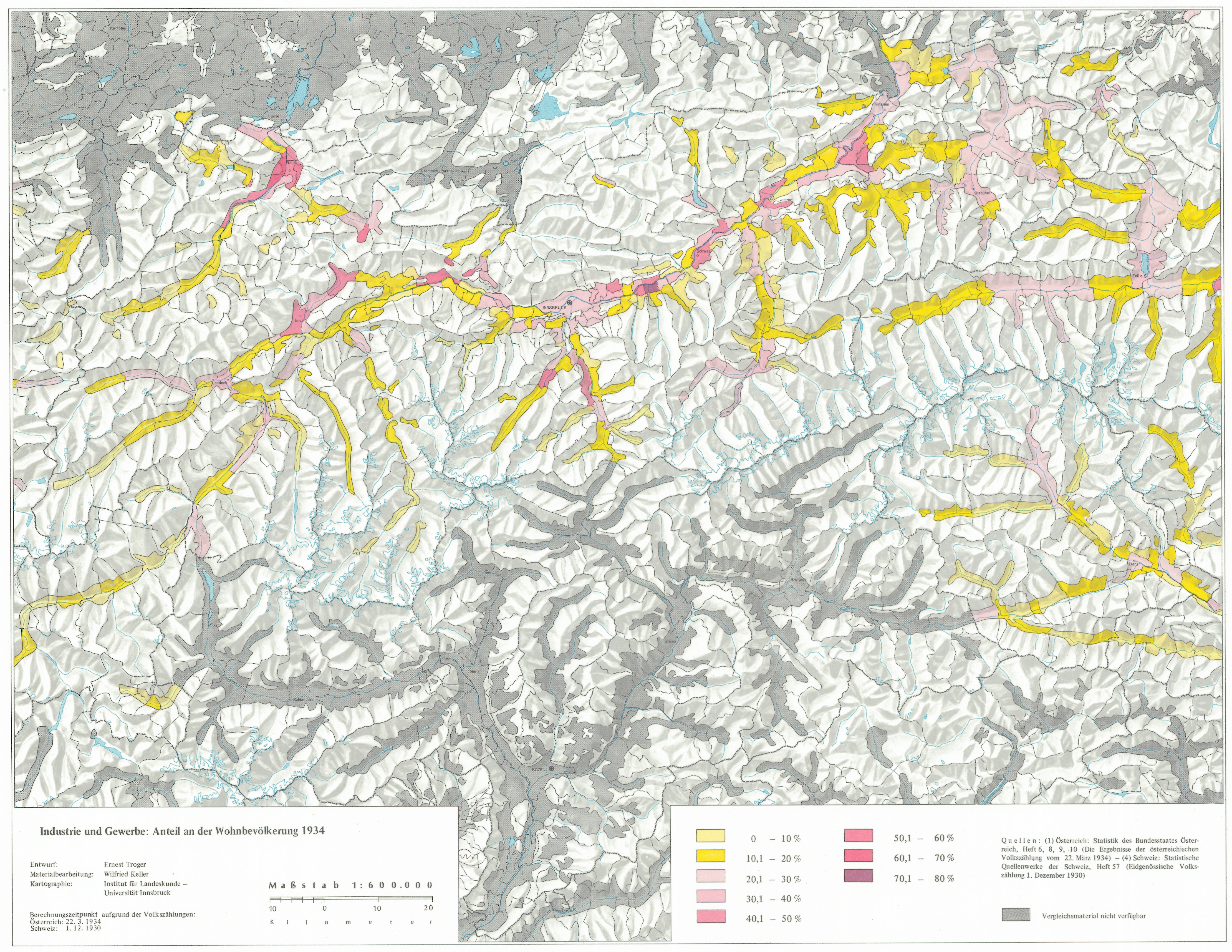 - Begleittext: Wilfried Keller: Bevölkerung - Verteilung, Entwicklung, Gliederung. In: Tirol Atlas Begleittexte I, S.32-33, Innsbruck 1974.