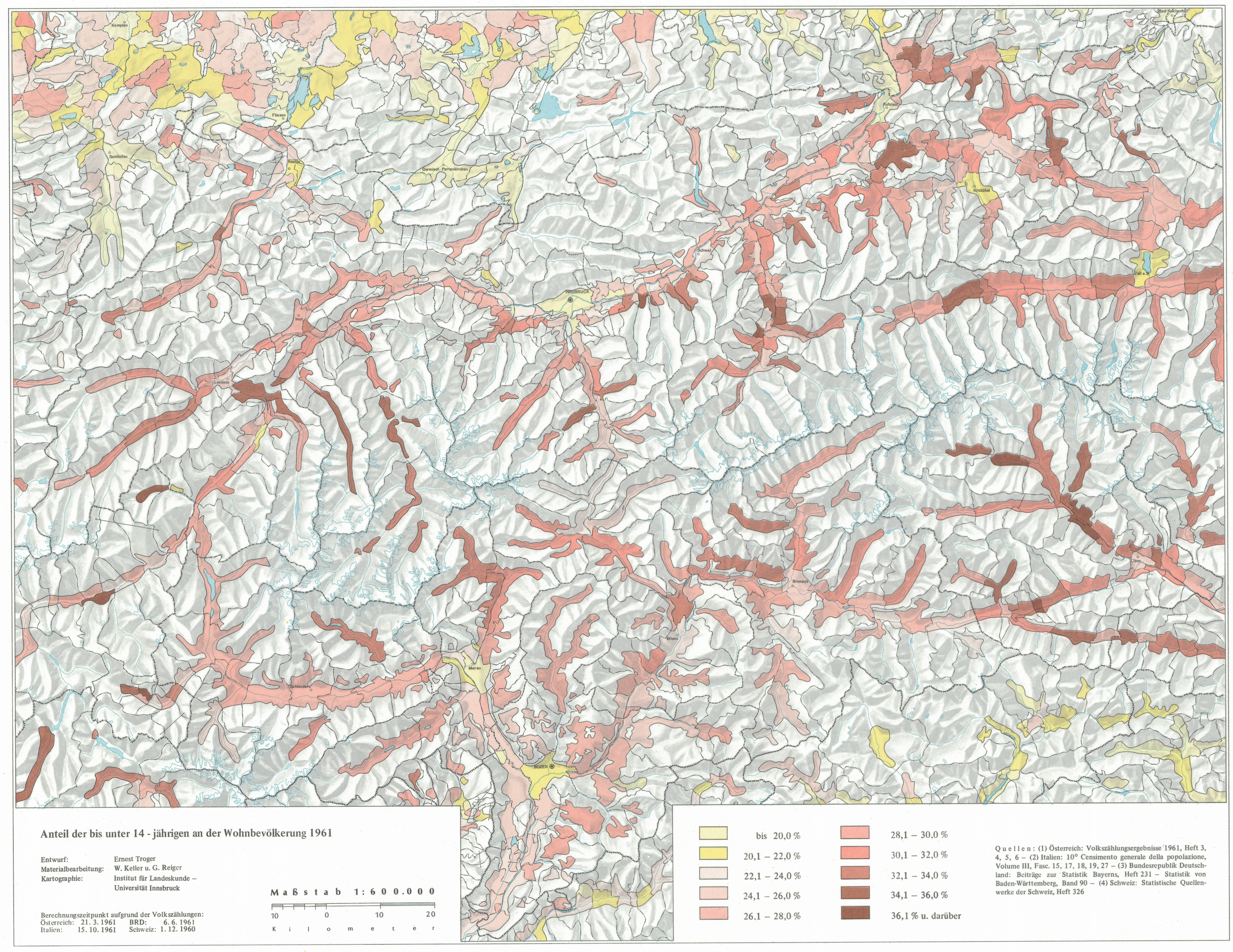 - Begleittext: Wilfried Keller: Bevölkerung - Verteilung, Entwicklung, Gliederung. In: Tirol Atlas Begleittexte I, S.33-34, Innsbruck 1974.