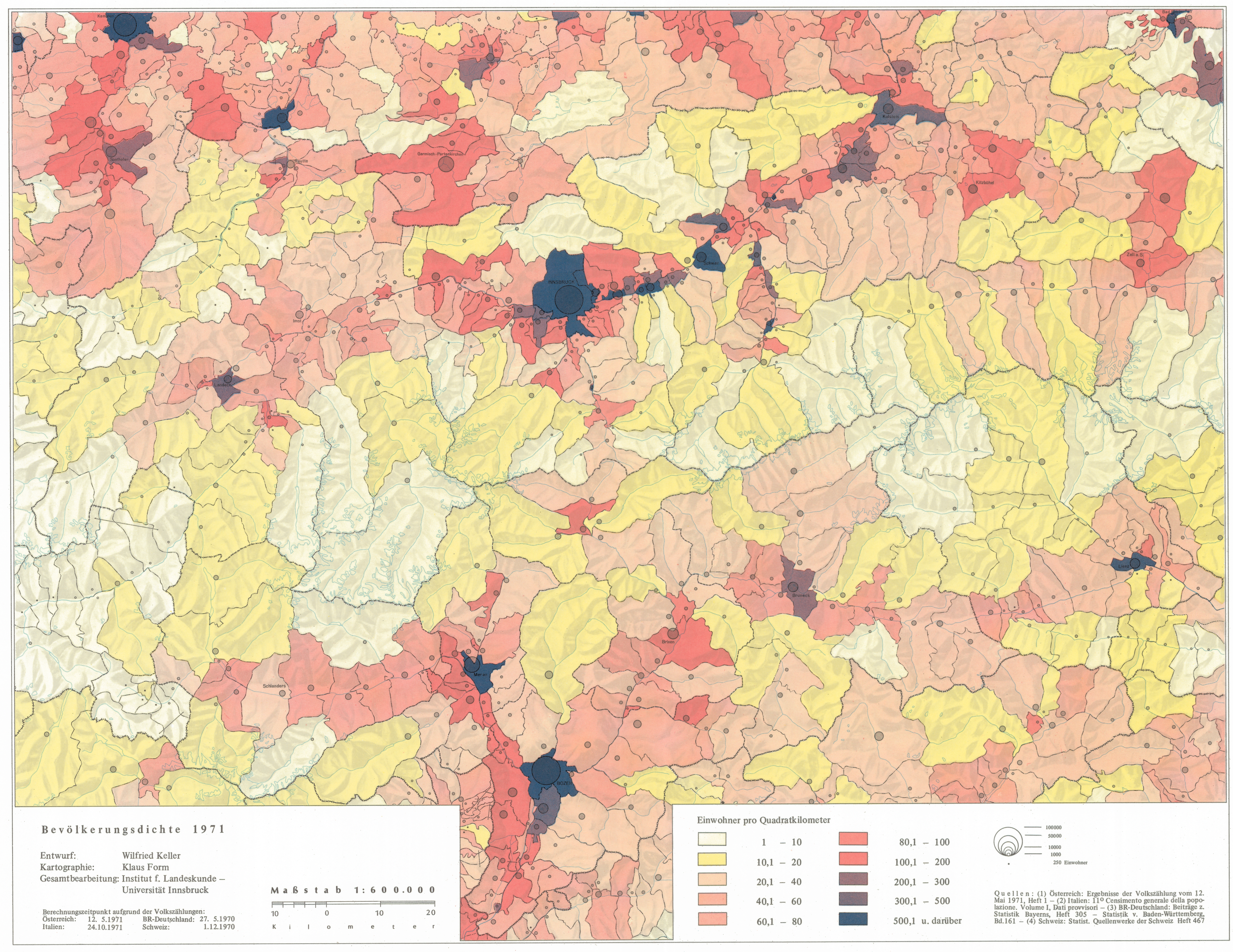 - Begleittext: Wilfried Keller: Bevölkerung - Verteilung, Entwicklung, Gliederung. In: Tirol Atlas Begleittexte I, S.31-32, Innsbruck 1974.