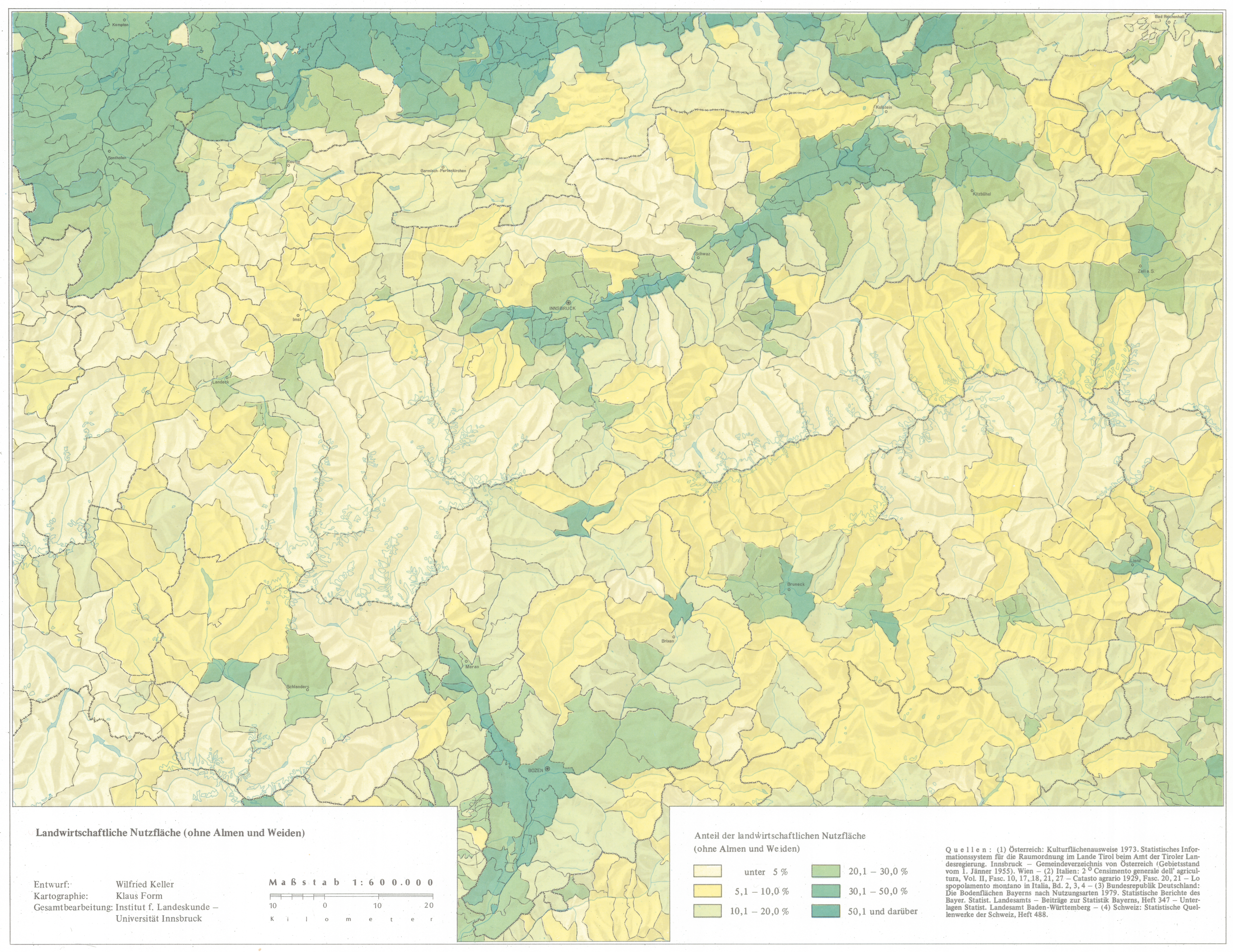 - Begleittext: Wilfried Keller: Verteilung der Kulturflächen. In: Tirol Atlas Begleittexte VII, S.27-29, Innsbruck 1981.