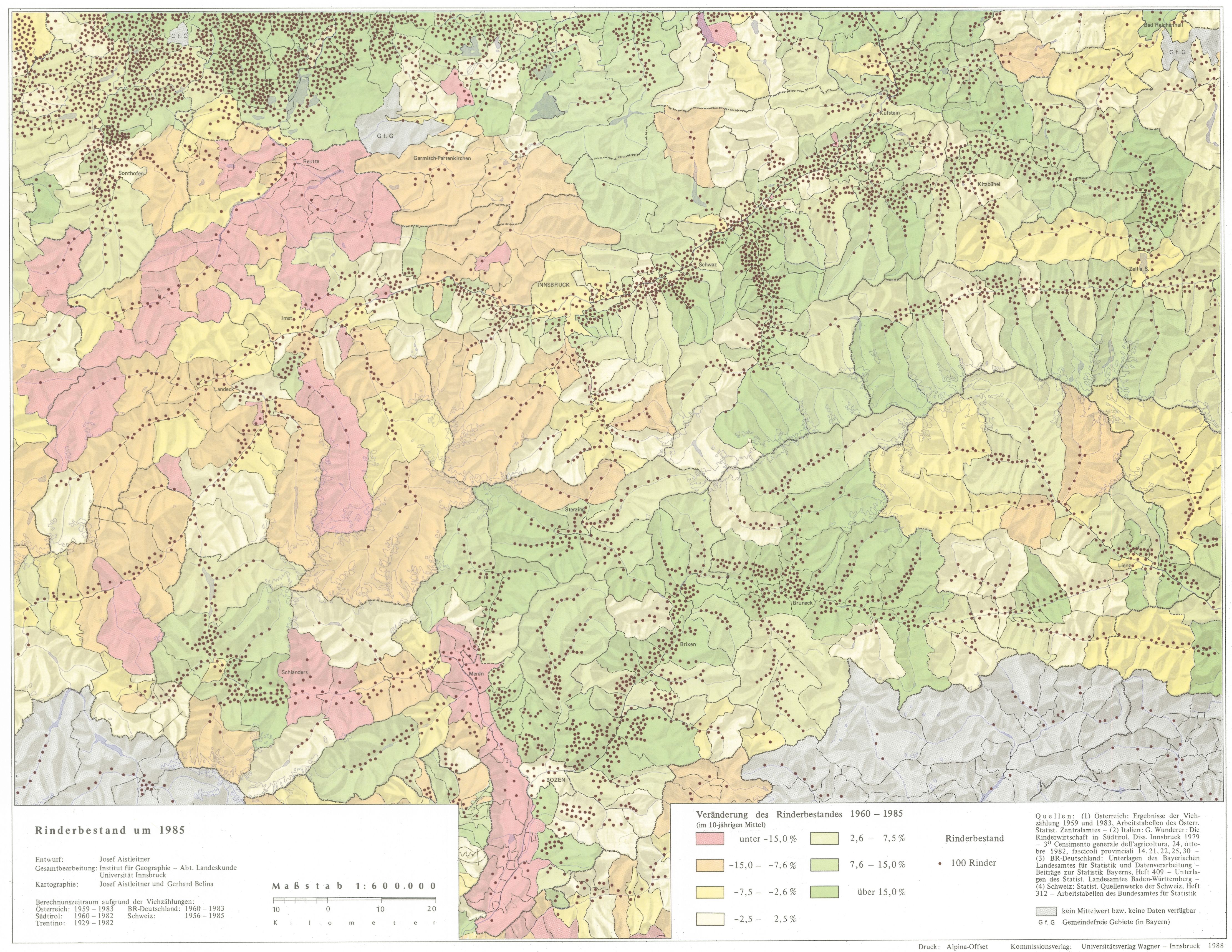 - Begleittext: Josef Aistleitner: Rinderbestand. In: Tirol Atlas Begleittexte XI, S.11-16, Innsbruck 1991.