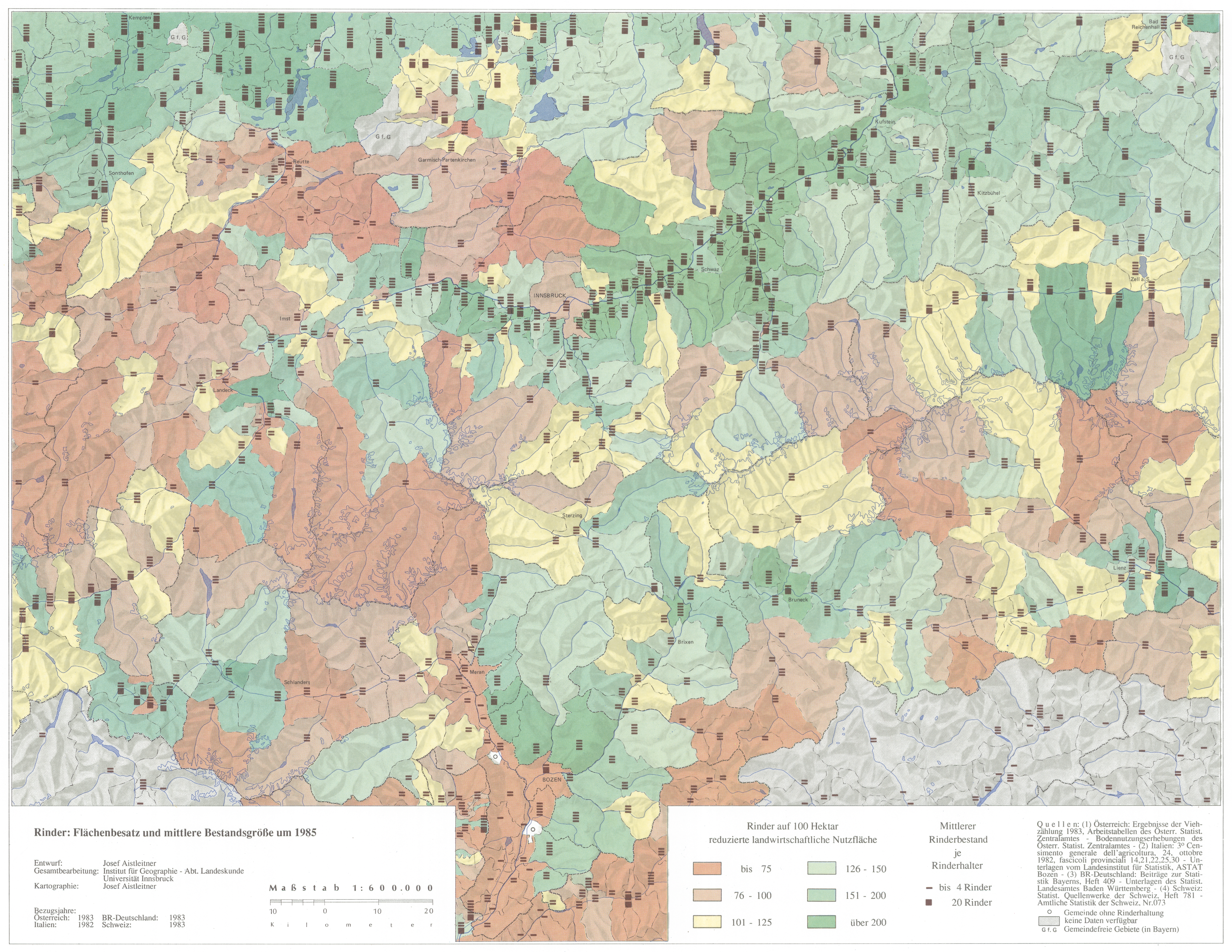 - Begleittext: Josef Aistleitner: Rinderhaltung. In: Tirol Atlas Begleittexte XI, S.17-23, Innsbruck 1991.